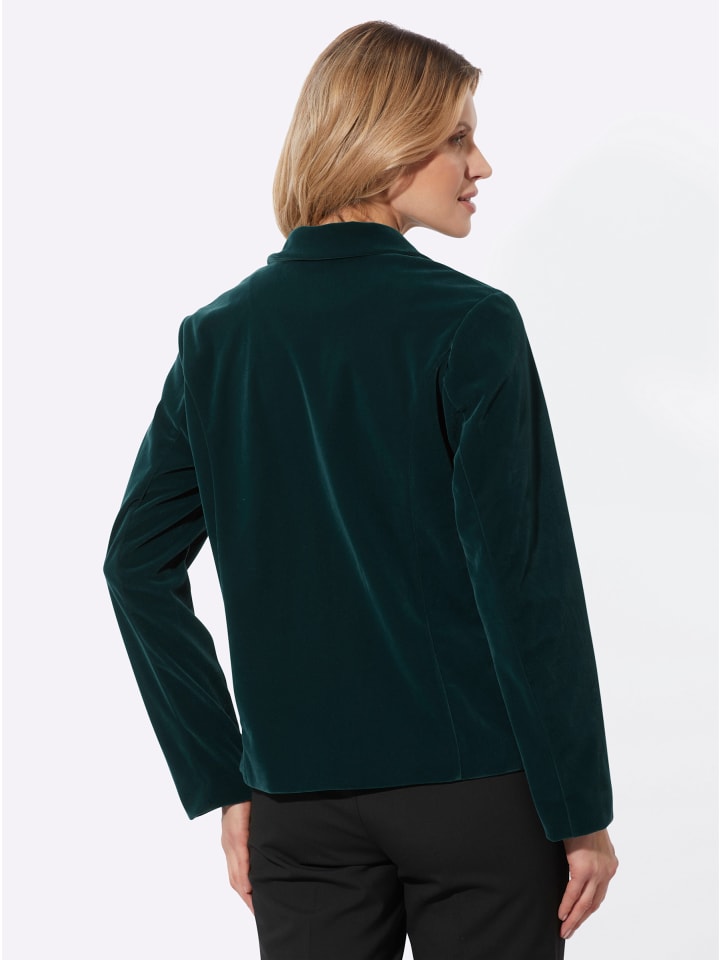 Изысканный аксессуар для элегантных образов: бархатный блейзер с отложным воротником и застежкой на пуговицы. Облегающие венские швы спереди и сзади. Слегка закругленный подол спереди.
