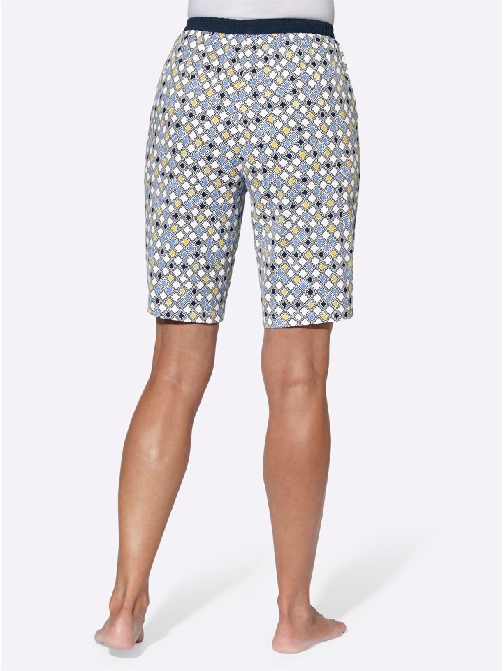 Короткие пижамные штаны с напечатанным рисунком. Контрастный эластичный пояс. Одинарный трикотаж.