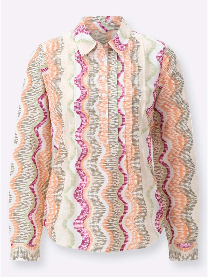 Эта туника из легкого крепа создает летнее настроение круглый год! Яркий дизайн и отстроченная окантовка спереди. Отложной воротник и пуговицы в тон. Вытачки на груди придают форму. Практичная и модная модель: длинные рукава можно подвернуть до ¾. Разрезы на манжетах. - Экстравагантный дизайн - Изысканная окантовка - Летняя легкая креповая ткань. Состав: 100% полиэстер