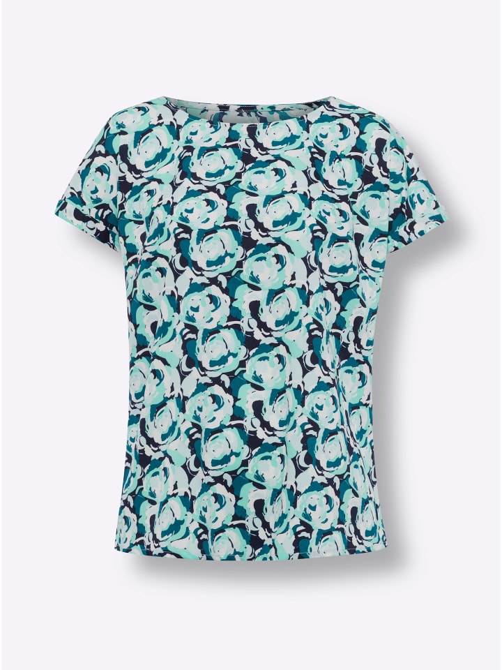 Отличная цена и красивый цветочный узор делают эту блузку без застежек вашей новой любимицей! Широкий круглый вырез, спущенные плечи и ложные манжеты. Вытачки для придания формы груди и слегка закругленный подол.