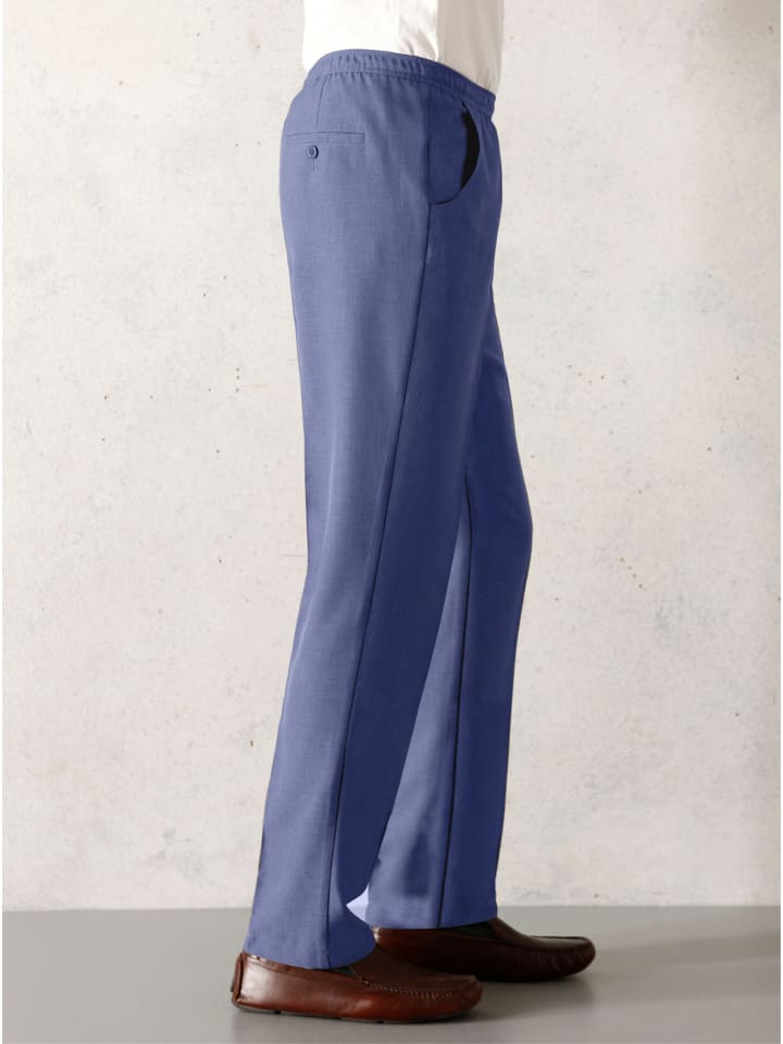 Брюки, которые можно застегивать - эластичный пояс по всему периметру делает их невероятно удобными, а меланжевая ткань и заутюженные складки придают им изысканный и элегантный вид. Застежка на молнию, два передних кармана и задний карман на пуговице.