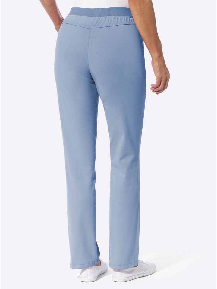 Удобное качество, удобная посадка и резинка на поясе: эти брюки из твила просто впечатляют. Два передних кармана и приталенная кокетка сзади. Ширина до щиколотки примерно 38 см.