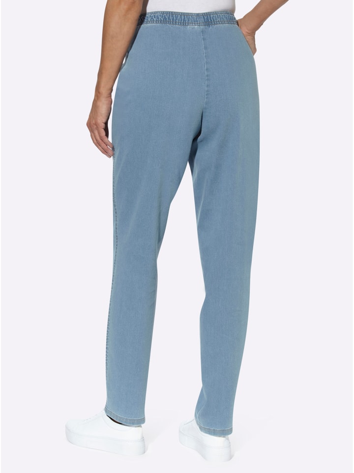 Наденьте их и чувствуйте себя комфортно: эти джинсы удобно и свободно сидят на бедрах, ягодицах и ягодицах. С удобным поясом на резинке по всему периметру. Эластичный материал. Ширина до щиколотки примерно 36 см.