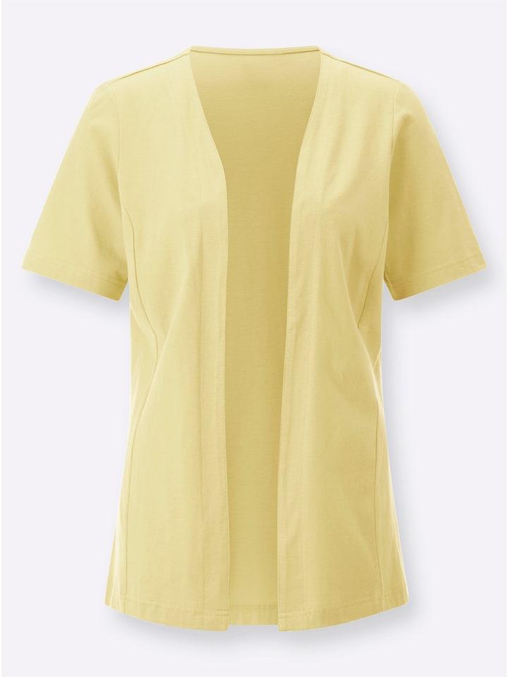 Сочетается с легкостью. Эта модная распашная и слегка удлиненная куртка-рубашка невероятно удобна в носке и станет прекрасным дополнением к вашему гардеробу. Венские швы, корректирующие фигуру. С короткими рукавами.