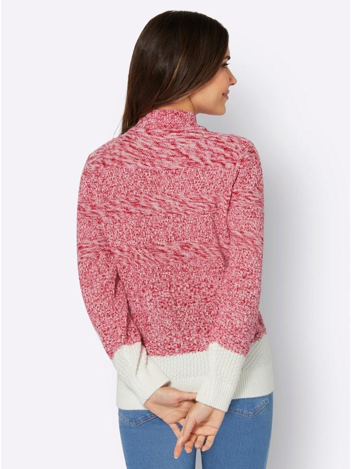 Все дело в сочетании: этот простой в уходе свитер с воротником-стойкой сочетает в себе меланжевое качество по всей поверхности с однотонными вставками на длинных рукавах и подоле. Он также выполнен из чередующихся изнаночных и текстурных узоров. Манжеты в рубчик.