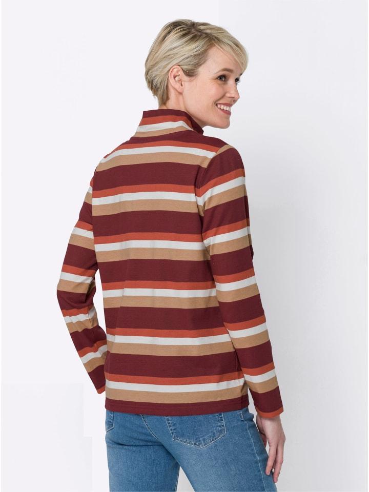 Эта рубашка с воротником-стойкой и универсальным полосатым рисунком подойдет любому гардеробу.