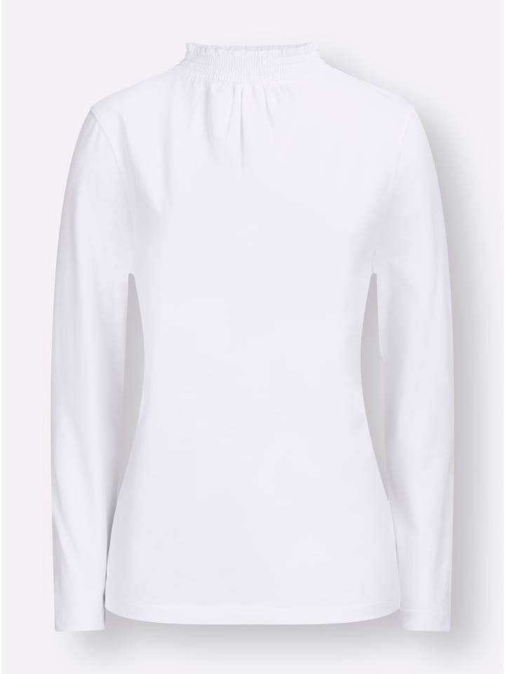 Носите ее отдельно или под блейзером, кардиганом и т. д. - эта рубашка с воротником-стойкой впечатляет своей привлекательной универсальностью. Присборенный воротник со сборками спереди.