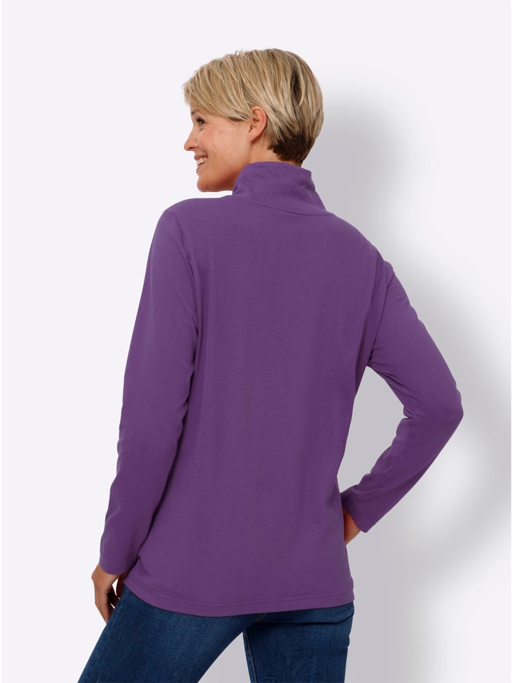 Универсальная рубашка с длинными рукавами из мягкого хлопка. Высокий воротник-стойка регулируется по ширине с помощью кулиски и двух завязок.