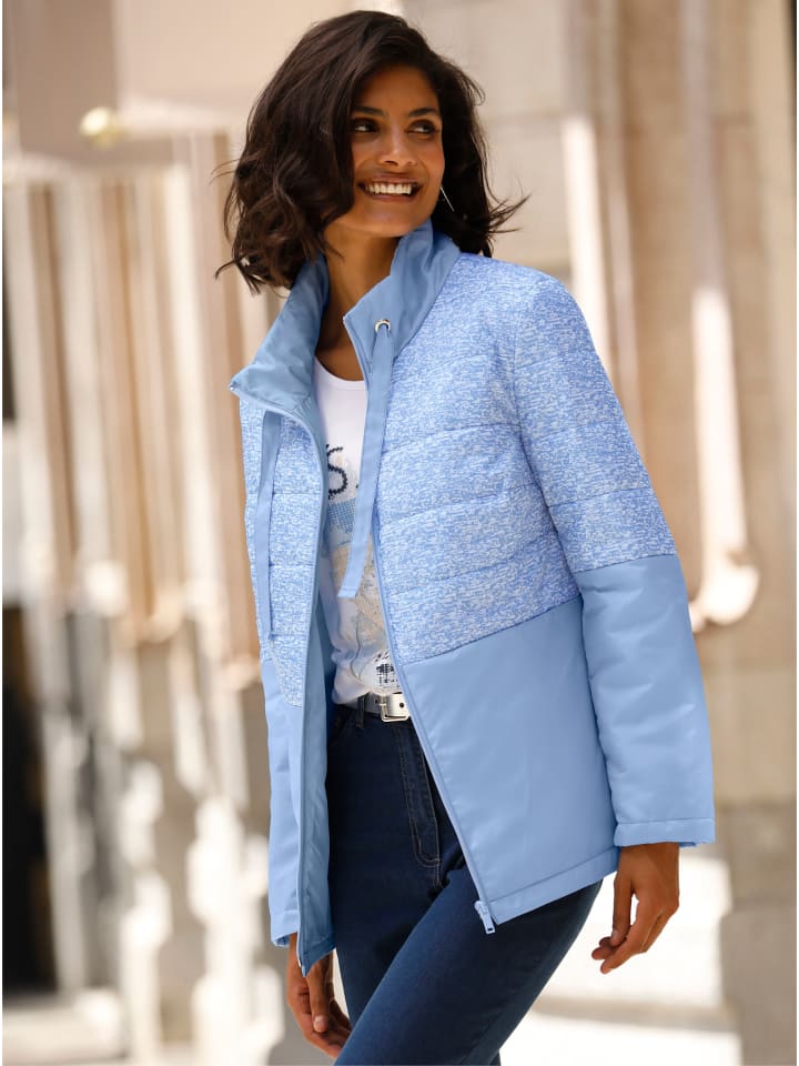 Эта стеганая куртка свободного кроя с эффектным дизайном - настоящий хит переходного сезона. Верхняя часть украшена меланжевым принтом и горизонтальным стеганым узором, а нижняя - однотонная. Высокий воротник-стойка с кулиской и завязкой, длинная молния и два кармана. Разделительный шов.