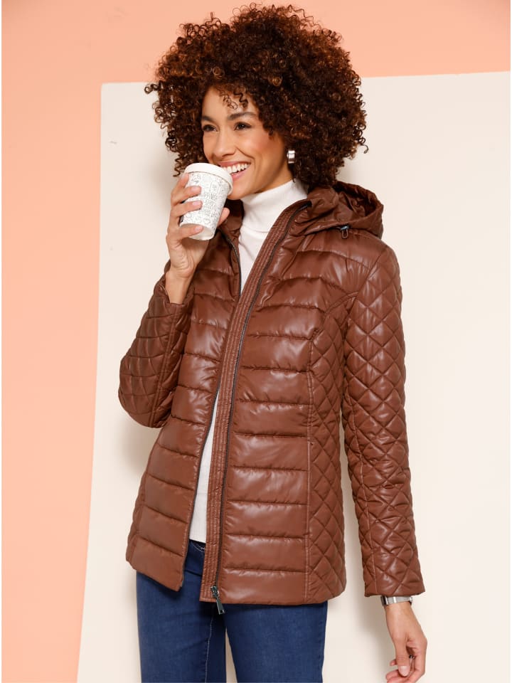 Каждой женщине нужна теплая стеганая куртка для холодных дней! Эта куртка с отложным воротником, облегающим стеганым узором на талии, незаметными карманами в изогнутых швах и защитным капюшоном.