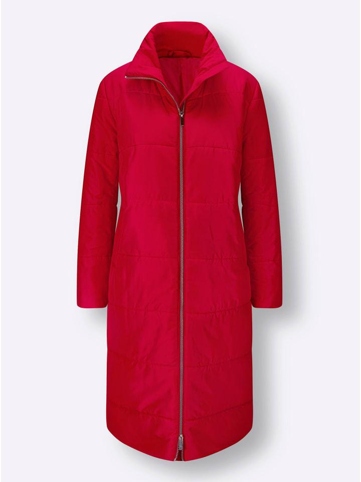 Согреет вас в холодные дни! Стеганое пальто с воротником-стойкой, практичной двухсторонней молнией и двумя прорезными карманами. На подкладке и с утеплителем.