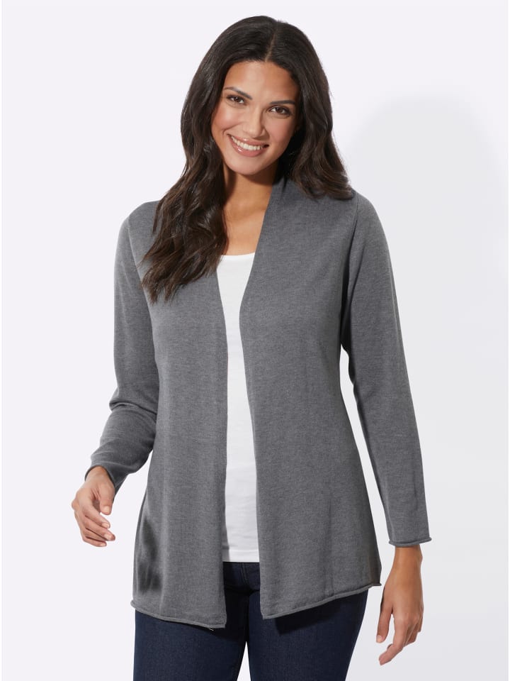 Этот кардиган - универсальная, практически незаменимая вещь, к тому же невероятно мягкий! Он имеет свободный крой с декоративными подвернутыми краями на рукавах и подоле. Он сшит из привлекательной меланжевой ткани с вискозой и кашемиром.