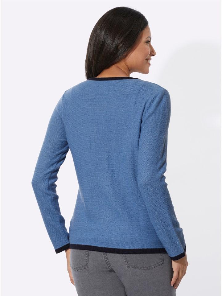 Этот кардиган изнаночной вязки - отличный выбор, будь то с джинсами или с элегантным дирндлем или юбкой. Контрастная отделка на круглом вырезе, вдоль планки с пуговицами, на встроенных карманах, на рукавах и по подолу. Серебристые традиционные пуговицы завершают образ.