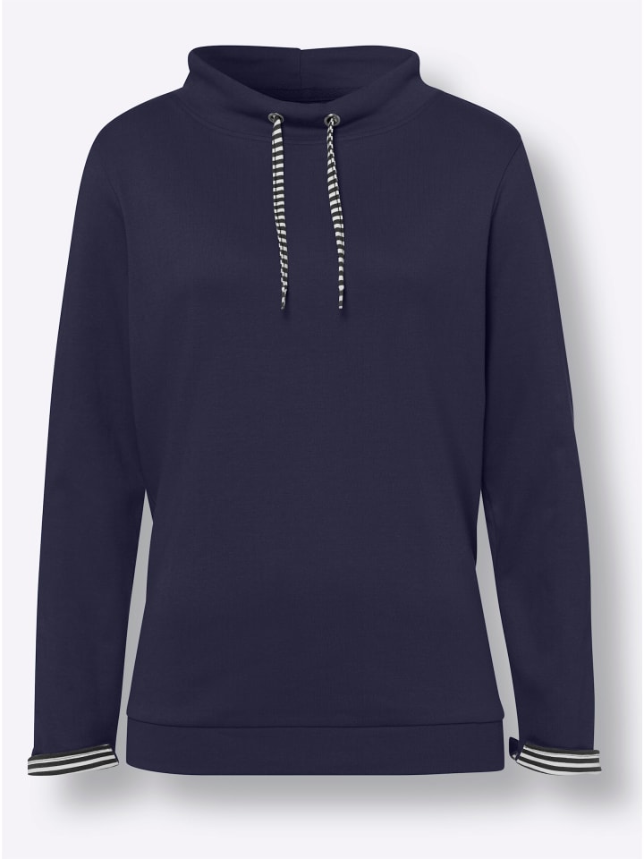 Эта толстовка сочетает в себе спортивный полосатый стиль и абсолютный комфорт! Узкий воротник-стойка с полосатым галстуком. Рукава с подворачиваемым разрезом и полосатая внутренняя часть. Толстовка изготовлена из очень приятной для кожи ткани интерлок.