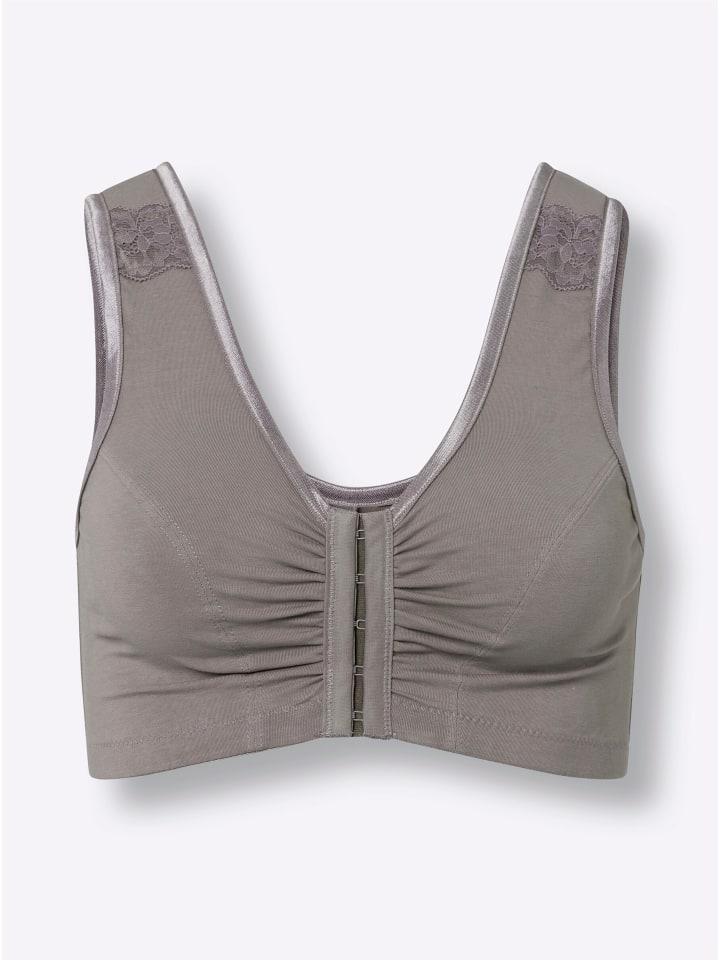 Надежная поддержка, мягкая посадка: поддерживающий бюстгальтер без косточек. Изысканная отделка с элегантным кружевом на мягких бретелях. Практичная застежка спереди и двухсекционные чашки.