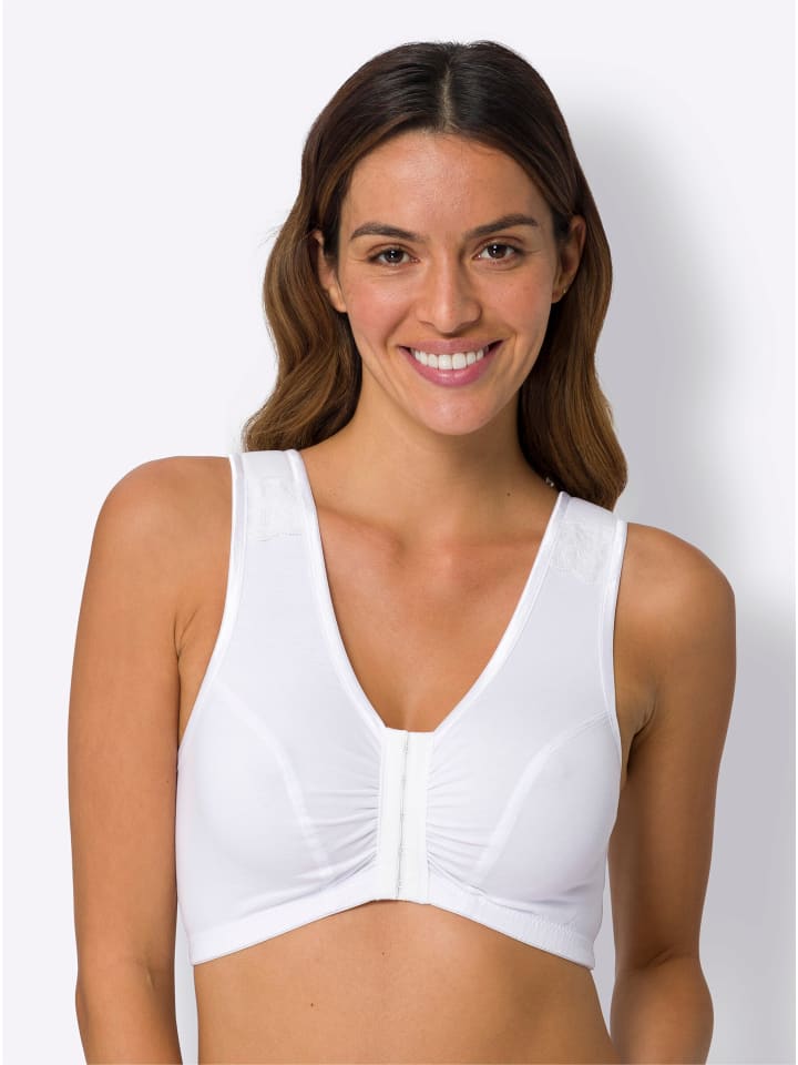 Надежная поддержка, мягкая посадка: поддерживающий бюстгальтер без косточек. Изысканная отделка с элегантным кружевом на мягких бретелях. Практичная застежка спереди и двухсекционные чашки.