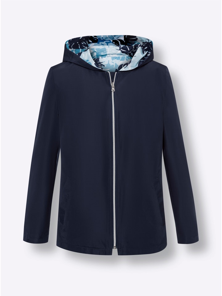 Как ни повернись, эта двусторонняя куртка с одной однотонной стороной и одной с принтом в виде листьев всегда выглядит великолепно. С капюшоном, застежкой-молнией, формирующими нагрудными вытачками и косыми прорезными карманами. Идеальный вариант для переходного периода.