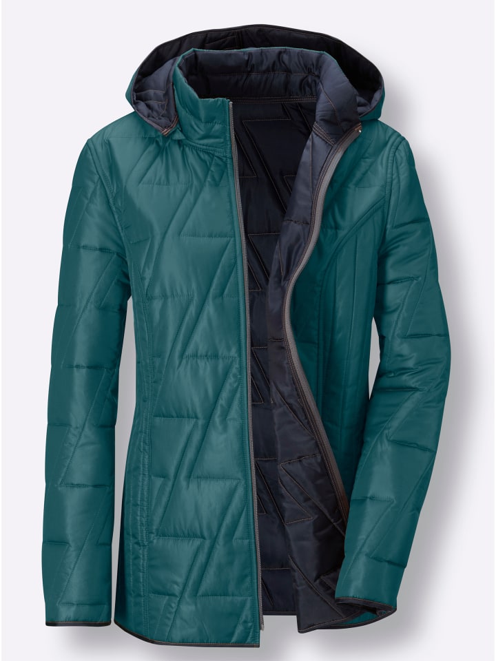 Уютная, теплая и невероятно универсальная! Эта двусторонняя куртка в модном стеганом стиле предлагает вам выбор между двумя универсальными цветами. Куртка имеет воротник-стойку, съемный капюшон, молнию с двусторонним бегунком и карманы в швах. Вертикальная стежка по бокам визуально удлиняет фигуру, а рельефные швы придают фигуре форму.