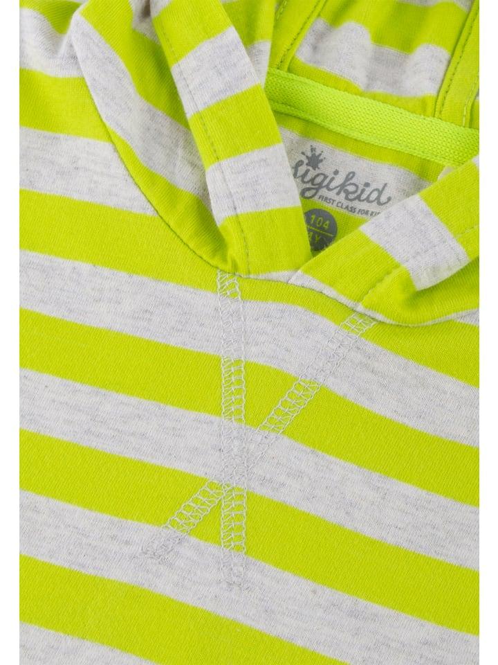 - Верх выполнен из однотонного трикотажа в неоново-желтую и светло-серую полоску