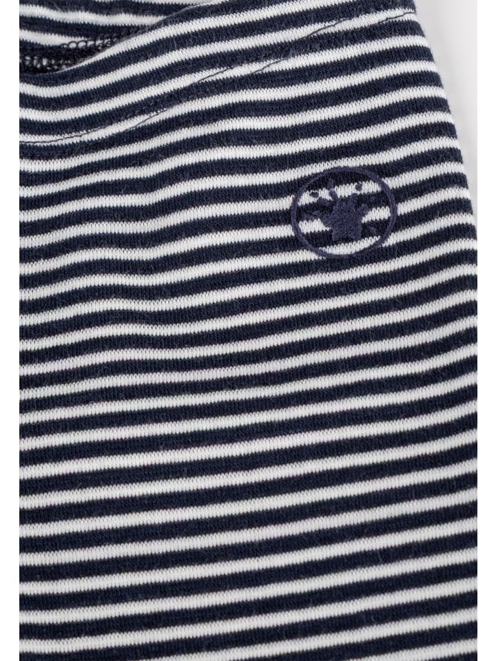 - Леггинсы выполнены из резинки в темно-синюю и белую полоску.