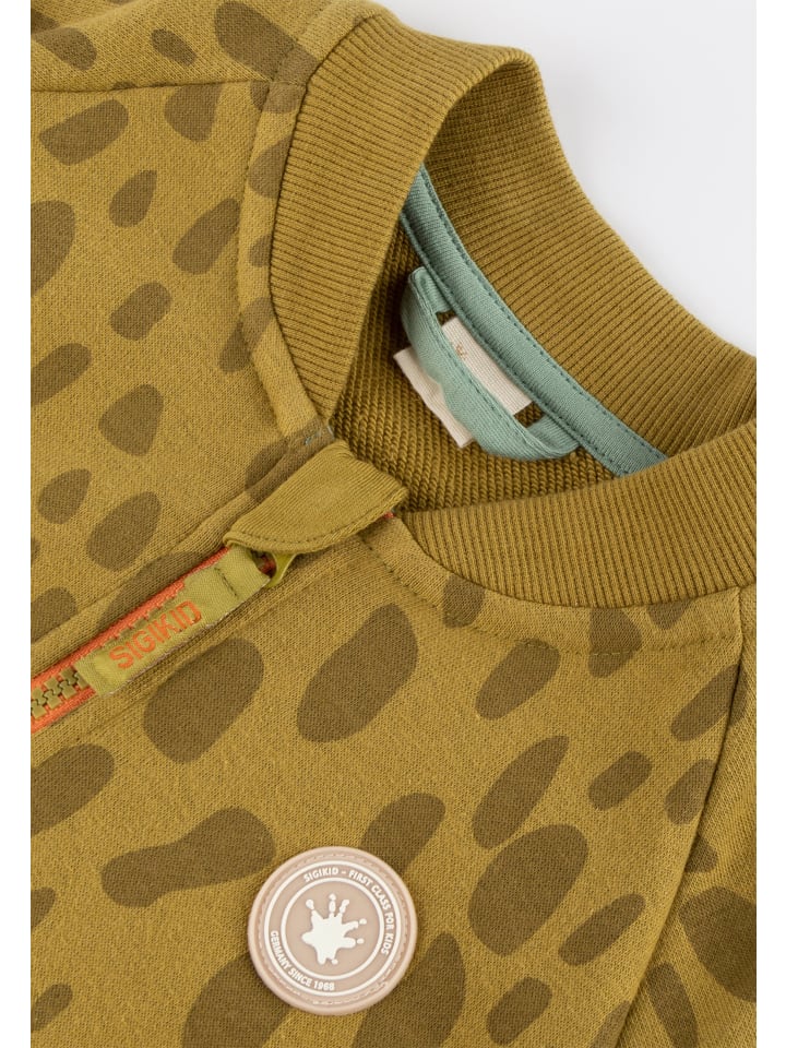- Что делает эту вещь особенной: Толстовка без подкладки с воротником-стойкой, контрастная молния с защитой подбородка и бегунком с логотипом sigikid, разделительный шов с боковыми карманами, широкие ребристые манжеты и пояс