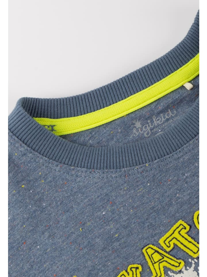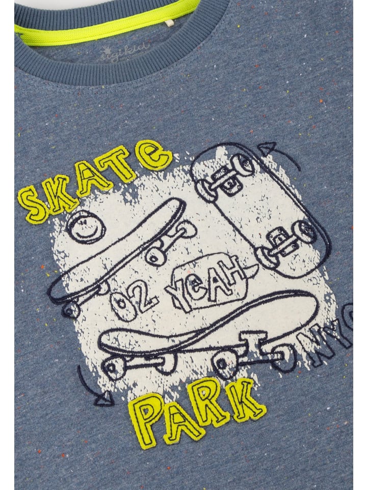 - Аппликация, вышивка, принт: флокированный принт и аппликация Скейт-парк; лейбл Sigikid Klecks