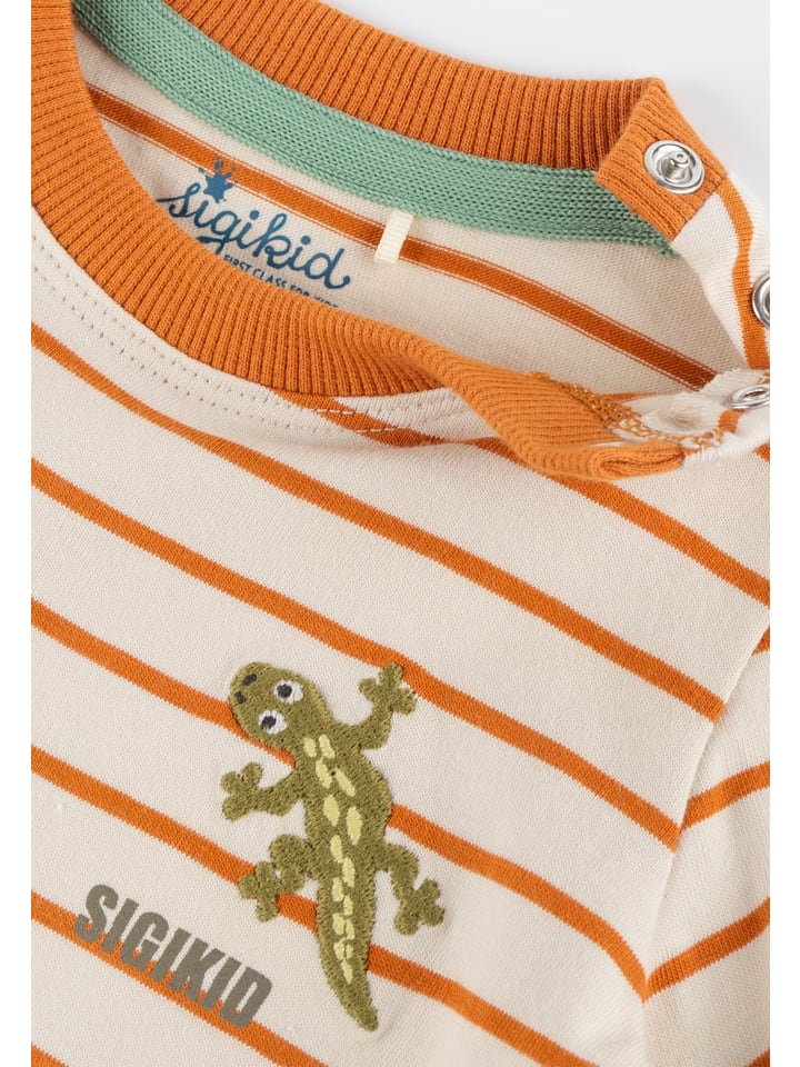 - Аппликация, вышивка, принт: вышивка геккона на груди, принт с логотипом sigikid