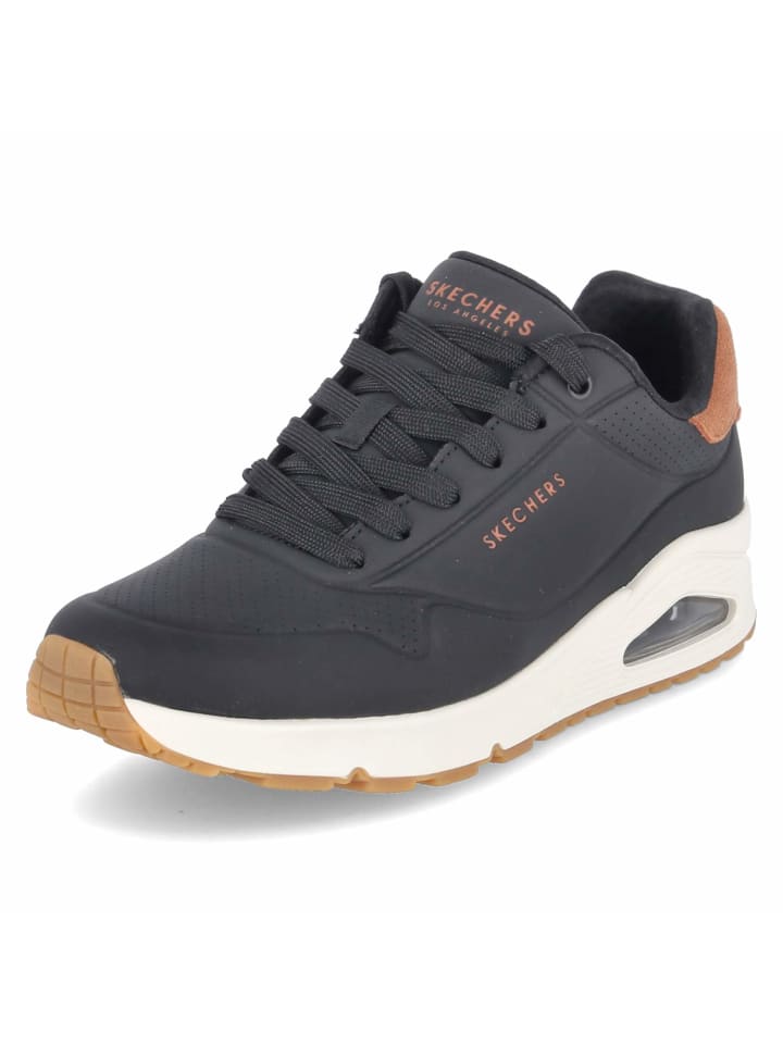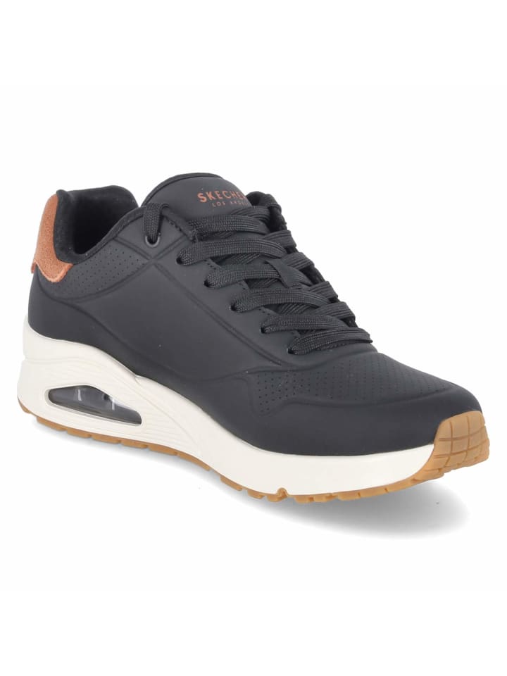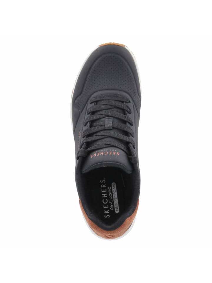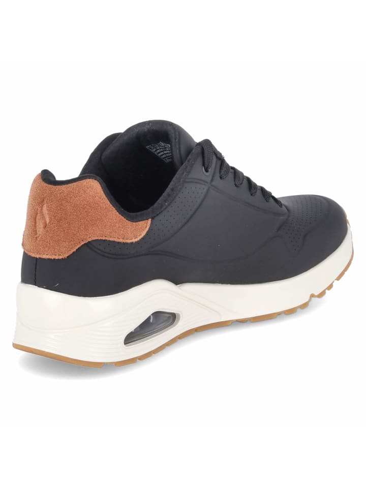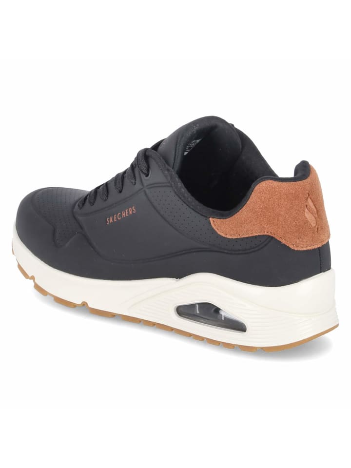 Низкие черные кроссовки UNO SUITED ON AIR от Skechers из прочного синтетического материала сочетают в себе спортивный стиль и исключительный комфорт. Динамичный тисненый рисунок и изящные фирменные детали подчеркивают современный вид, а усиленные носок и пятка обеспечивают устойчивость и долговечность. Мягкий бортик гарантирует комфортную посадку даже при длительной носке. Удобная стелька из пены с эффектом памяти адаптируется к форме стопы и обеспечивает оптимальную амортизацию. Противоскользящая профилированная подошва обеспечивает надежное сцепление с различными поверхностями, а видимая воздушная подушка в области пятки обеспечивает ощутимое облегчение при каждом шаге. Кроссовки на каждый день для мужчин, которые ценят комфорт, функциональность и спортивный внешний вид.