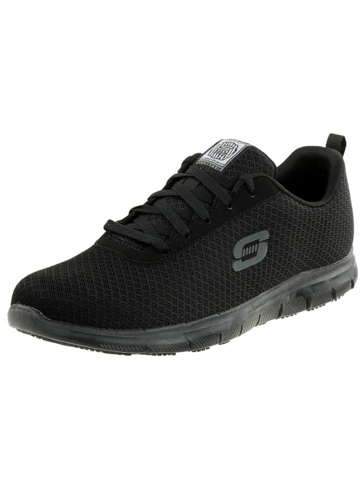 Спортивные женские рабочие туфли на шнуровке со стелькой из пены с эффектом памяти Skechers Air Cooled Air Cooled для комфортной и свободной посадки. Модель Skechers Ghenter-Bronaugh из коллекции Work впечатляет своим спортивным стилем. Верх из сетки и синтетического материала водо- и грязеотталкивающий.