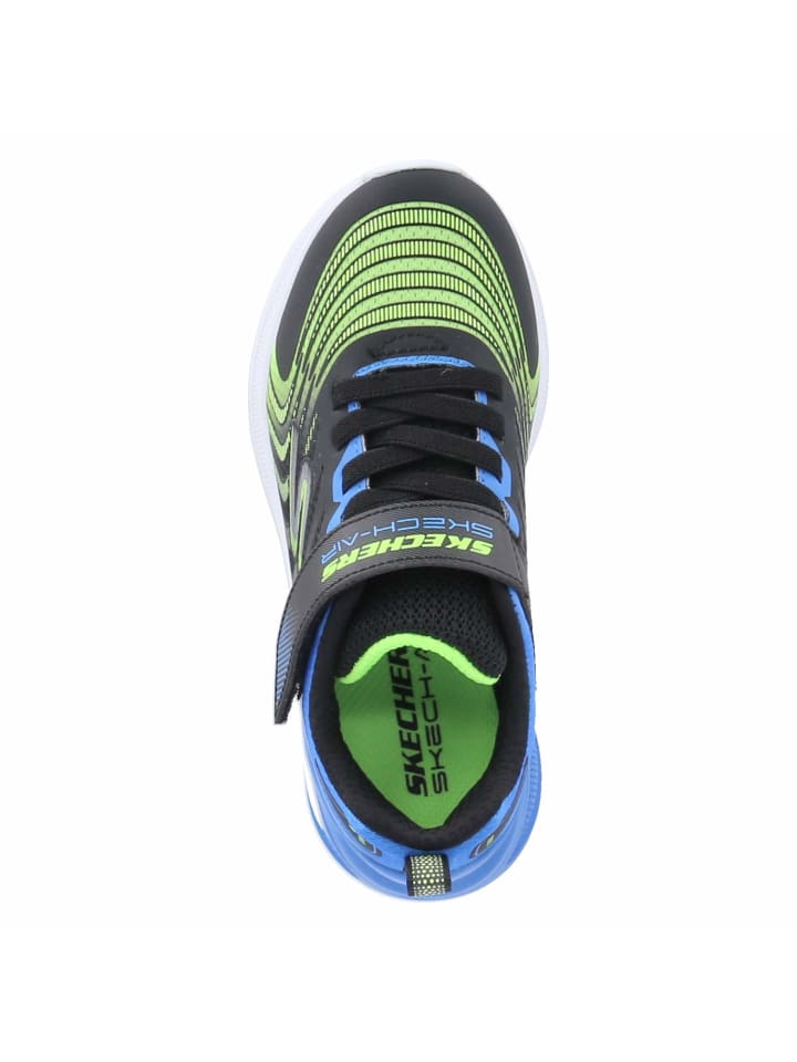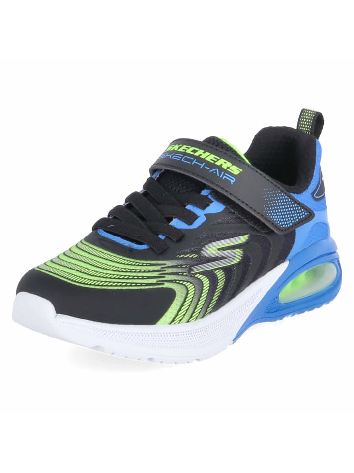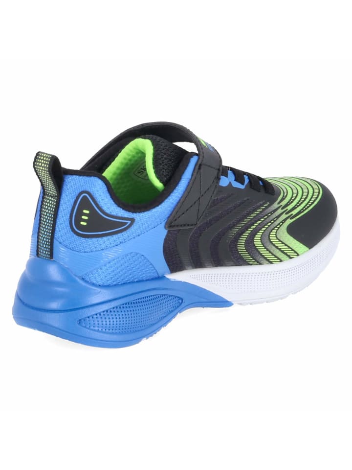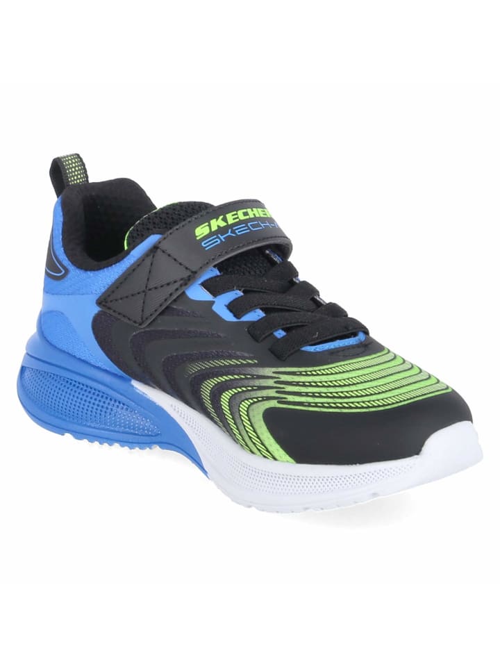 Детские низкие кеды Skechers MICROSPEC MAX ADVANCE VORTIVOX черного цвета сочетают в себе спортивный стиль и яркий дизайн. Прочный верх из смеси текстиля и синтетических материалов с динамично изогнутыми полосками светло-зеленого цвета придает модели энергичный вид. Застежка на липучке и эластичная шнуровка позволяют быстро надевать и снимать кроссовки, обеспечивая надежную посадку. Усиленные носок и пятка защищают стопу при каждом движении, а мягкий бортик гарантирует высокий уровень комфорта. Фирменная деталь подчеркивает качество бренда, а мягкая стелька обеспечивает комфортную амортизацию. Гибкая, не оставляющая следов подошва обеспечивает надежное сцепление с любой поверхностью и подходит для использования в помещении. Практичная застежка завершает изысканный дизайн - динамичный компаньон для школы, отдыха и игр.