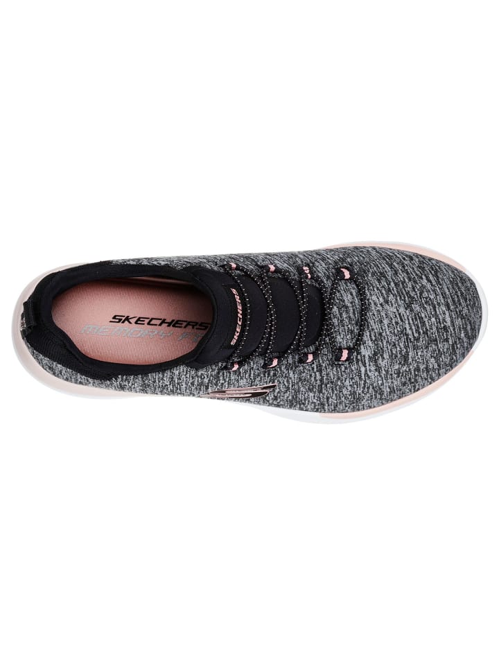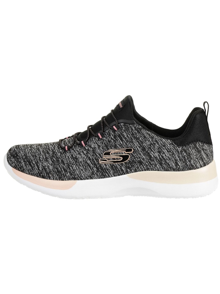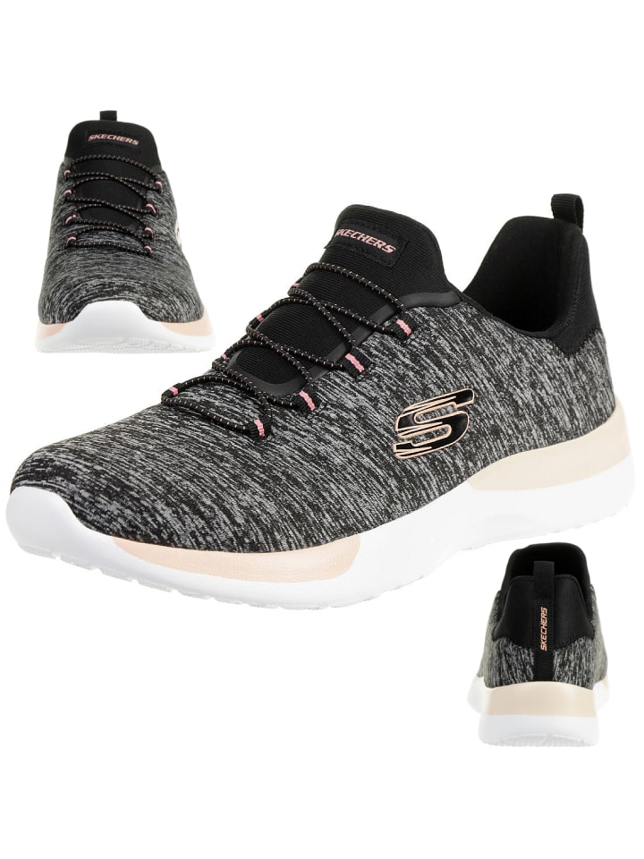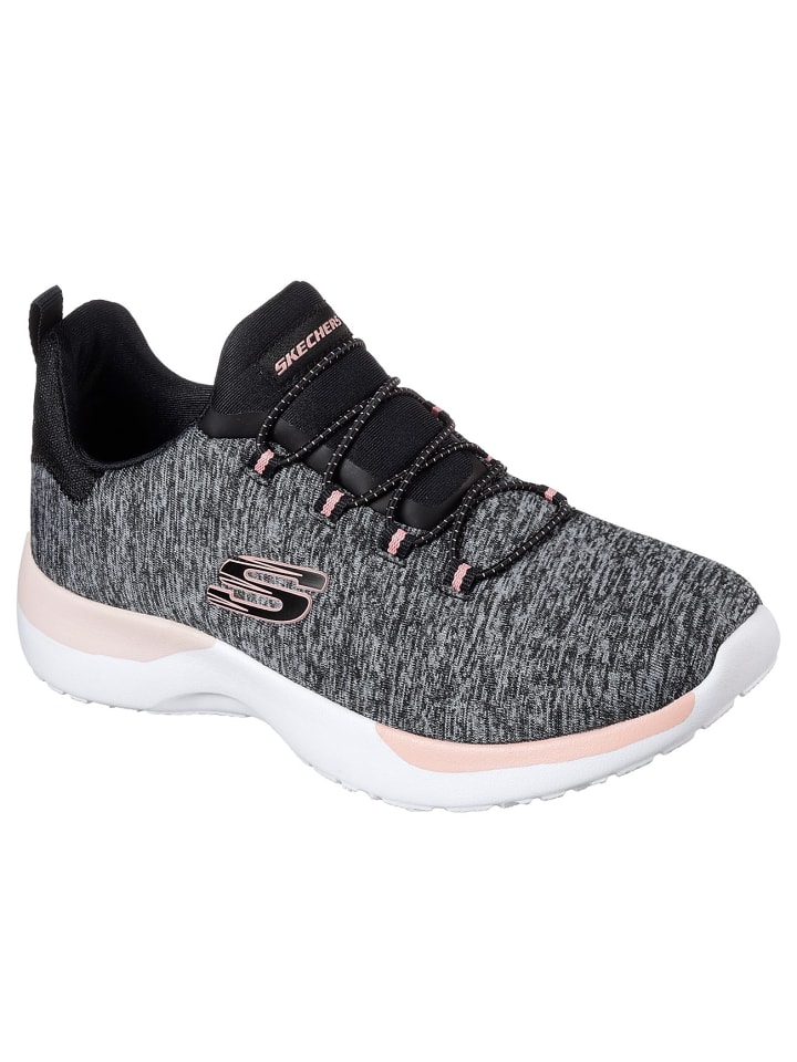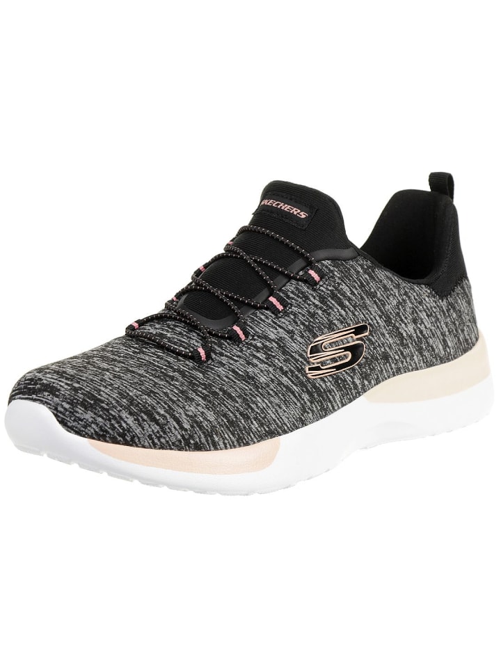 Кроссовки SKECHERS Dynamight - Break-Through дарят настоящий взрыв комфорта и веселья. Эти спортивные, удобные кроссовки без застежек имеют конструкцию с эластичной шнуровкой, мягкий сетчатый верх с меланжевым принтом, амортизирующую промежуточную подошву и стельку из пены с эффектом памяти.