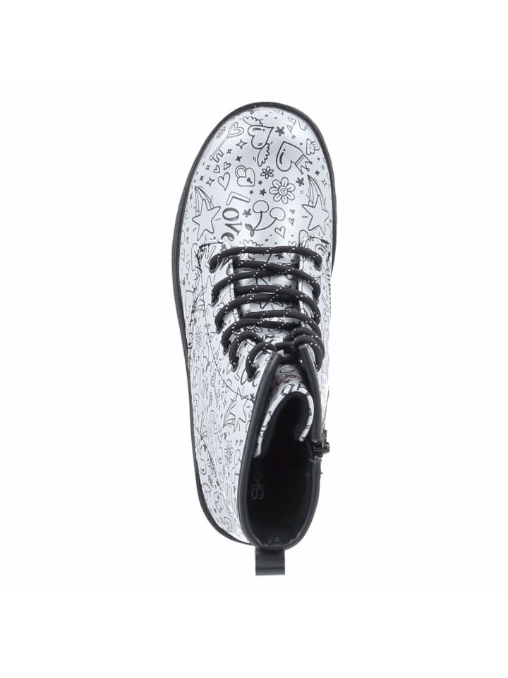 Детские ботинки GRAVLEN HI DOODLE DOWN от Skechers сочетают в себе игривый дизайн и продуманные детали. Серебристый синтетический верх служит фоном для черного рисунка, оживляя дизайн. Простая в уходе поверхность впечатляет своей повседневной одеждой, а круглый носок и блочный каблук высотой 4 см обеспечивают устойчивость. Легкая подкладка и текстильная стелька обеспечивают комфорт в прохладные дни, не утяжеляя обувь. Шнурки и молния позволяют точно регулировать посадку и быстро снимать и надевать ботинки. Профилированная нескользящая подошва обеспечивает надежное сцепление - как по дороге в школу, так и во время игры. Полнота стандартная. Модный совет: сочетайте с вельветовыми брюками, стеганой курткой-анорак и ярко-желтой шляпой для сбалансированного сочетания функциональности и моды.