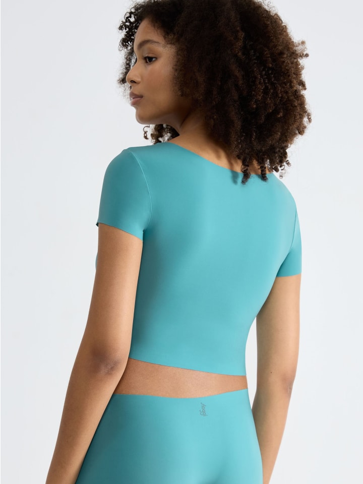 Ощутите неуловимость этого укороченного топа Zero Feel из ультралегкой, эластичной переработанной микрофибры с короткими рукавами. Инновационная технология точечного сшивания гарантирует отсутствие швов и следов. Двусторонний вырез горловины позволяет создать два образа в одном.