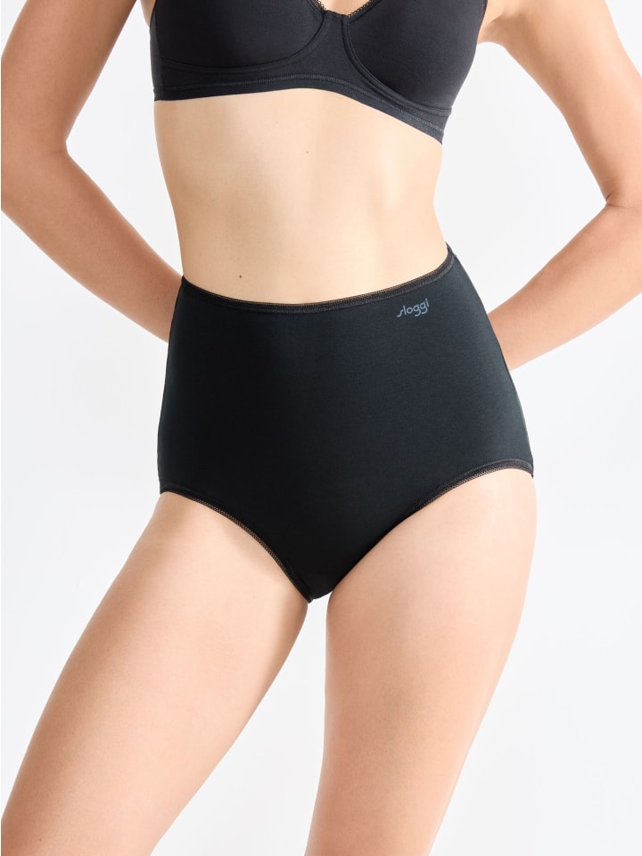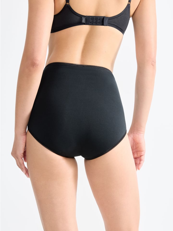Самый продаваемый силуэт с высокой талией и заниженной линией бедра, а также современной отделкой, выполнен из органического хлопка.