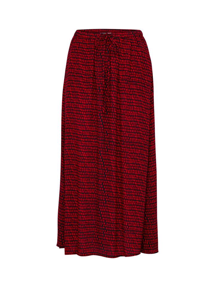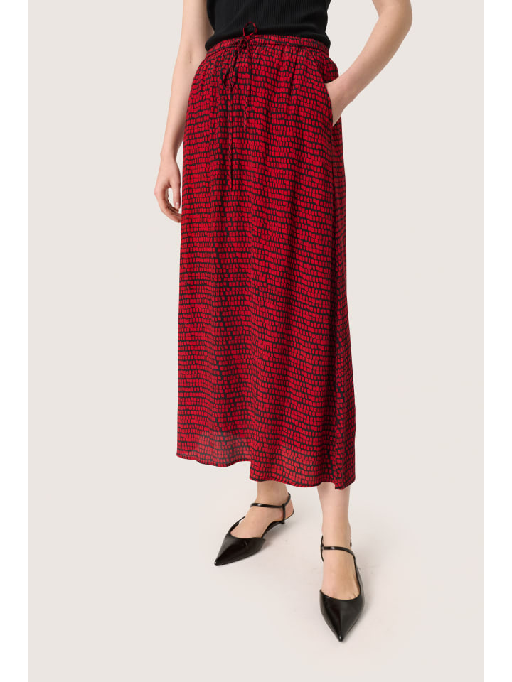 Юбка миди прямого силуэта, с эластичным поясом на завязке и нежным узором по всей поверхности. Боковые карманы обеспечивают повседневный комфорт.