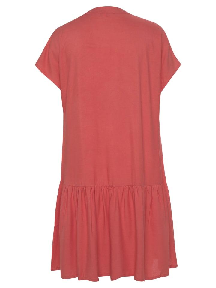 Короткое платье-блузка от s. Oliver Beachwear свободного кроя с широким воланом по подолу. V-образный вырез с узким воротником. Изготовлено из тканой вискозы.