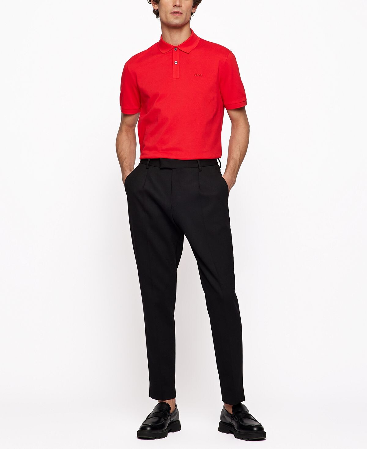 Спортивная рубашка-поло обычного кроя от BOSS Menswear. Эта рубашка-поло из мягкой ткани пике украшена фирменной тесьмой на внутреннем воротнике и вышита на груди однотонным логотипом BOSS.