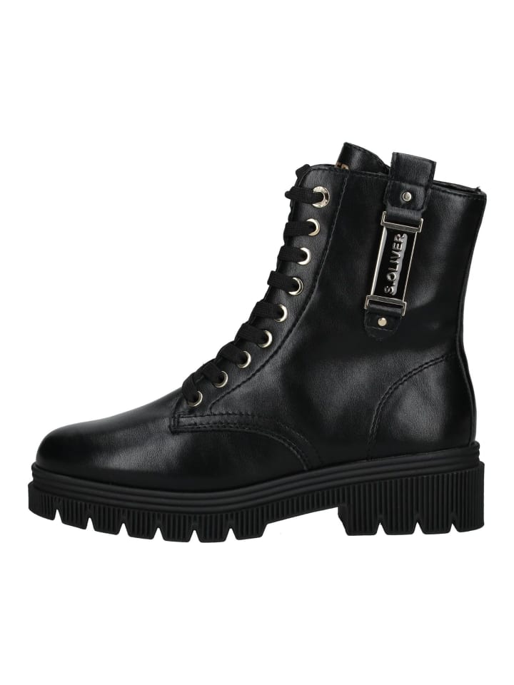 Эти модные ботинки на шнуровке сочетают в себе классический дизайн с современными деталями, обеспечивая высокий уровень комфорта. Гладкий верх придает обуви элегантный вид, а декоративные металлические элементы по бокам добавляют стильный акцент. Шнуровка позволяет регулировать посадку и дополнена практичной молнией, которая позволяет легко надевать и снимать ботинки. Профилированная подошва обеспечивает хорошее сцепление с поверхностью в повседневной носке. Универсальный аксессуар для городских образов с модным акцентом.