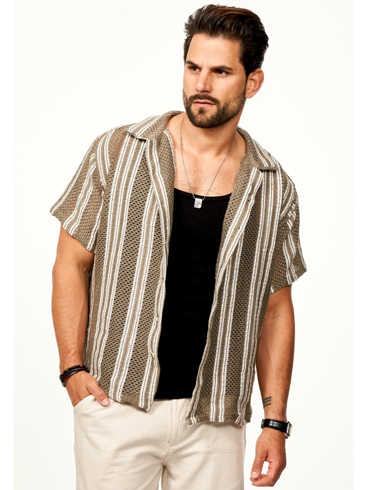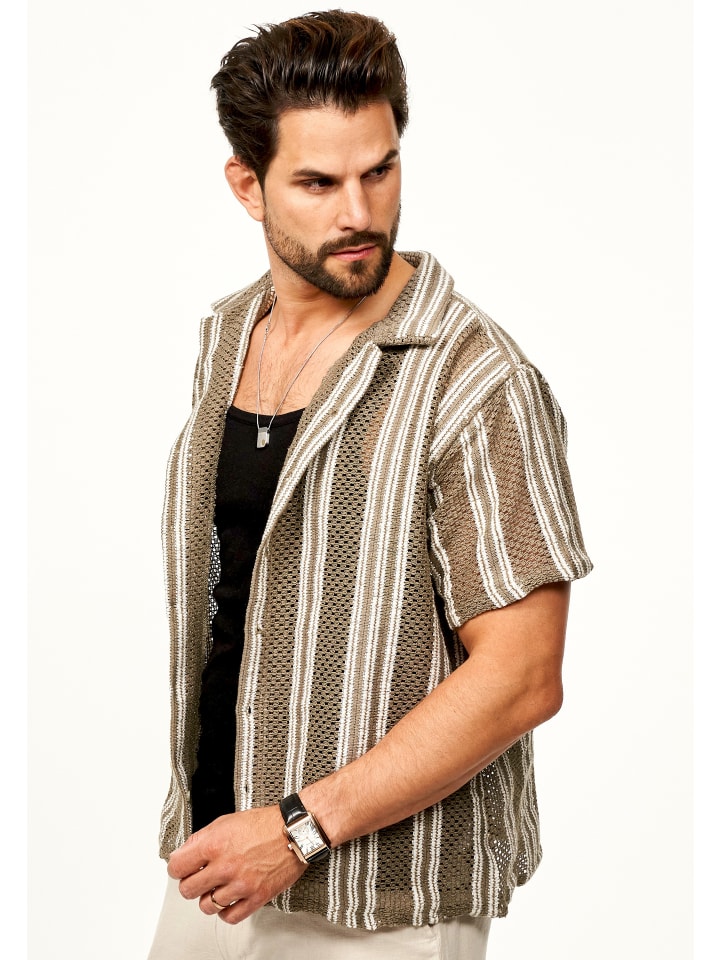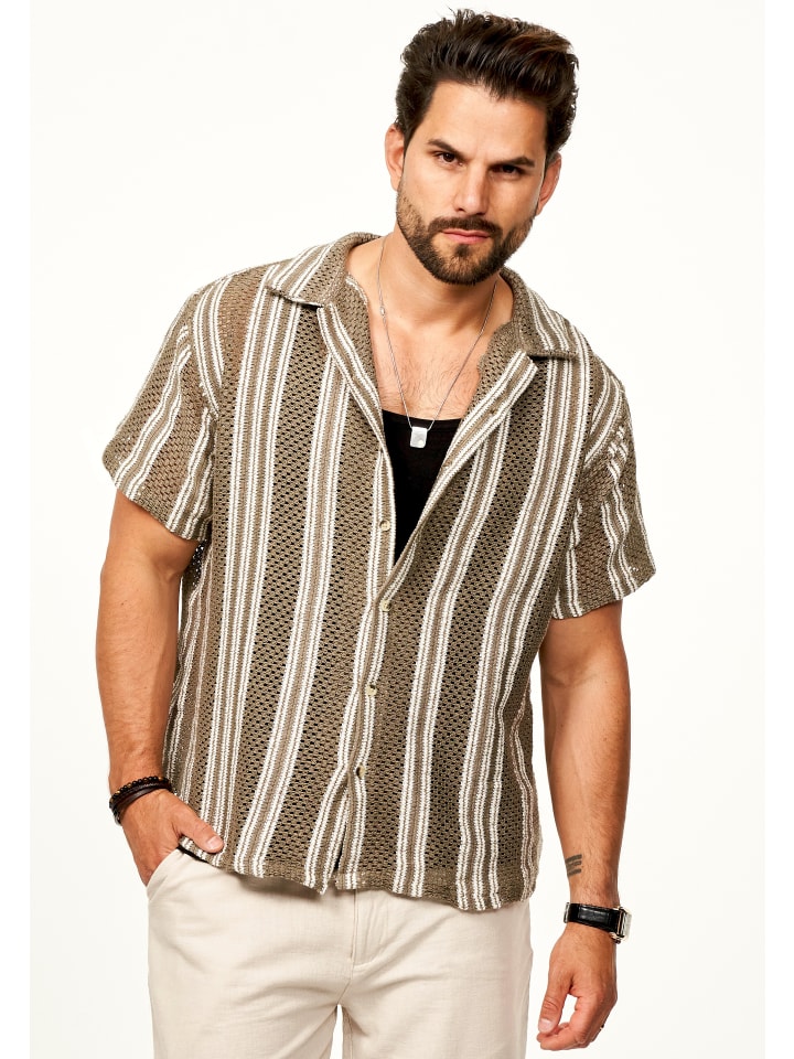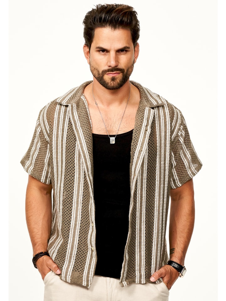Структурированный вид в теплых коричневых и бежевых тонах делает рубашку по-настоящему притягивающей взгляд - будь то прогулка по городу, фестиваль или закат на пляже.