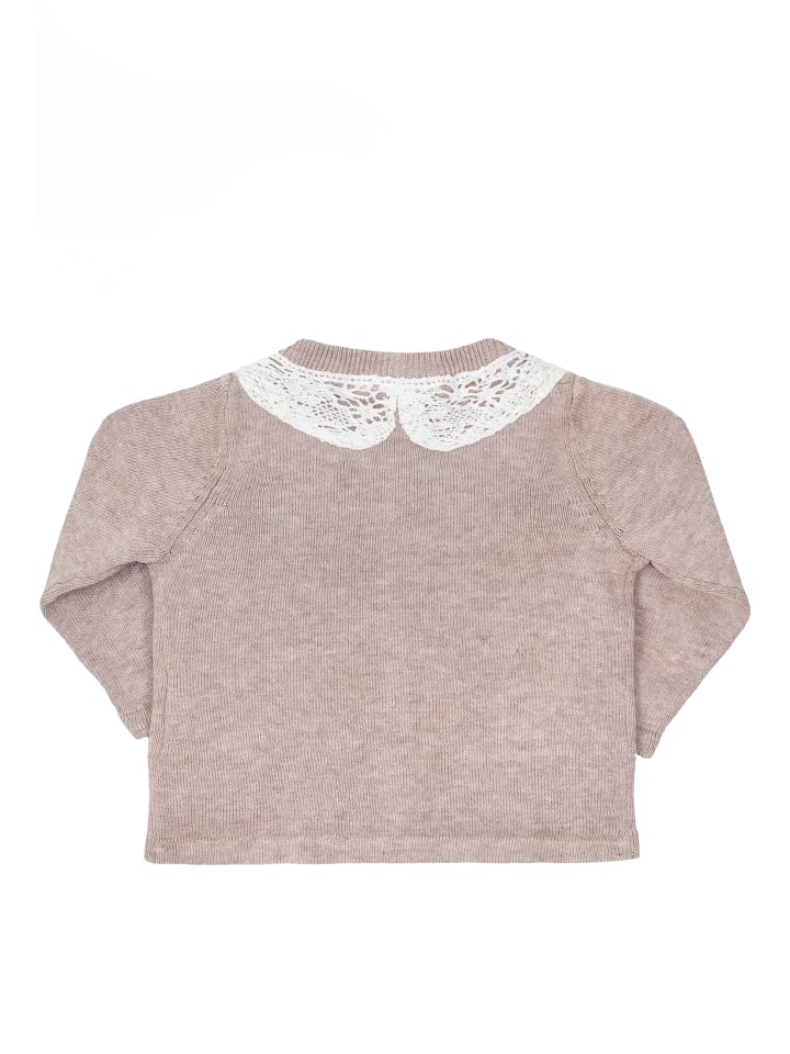 Stellou & Друзья - только лучшее для малышей! Этот легкий кардиган - просто незаменимая вещь в гардеробе благодаря нейтральному бежевому оттенку. С летним платьем или плотными брюками, юбкой или шортами... этот кардиган - универсальная вещь и незаменимая вещь в гардеробе. Кружевной воротник в стиле Питер Пэн придает жакету особый шарм.