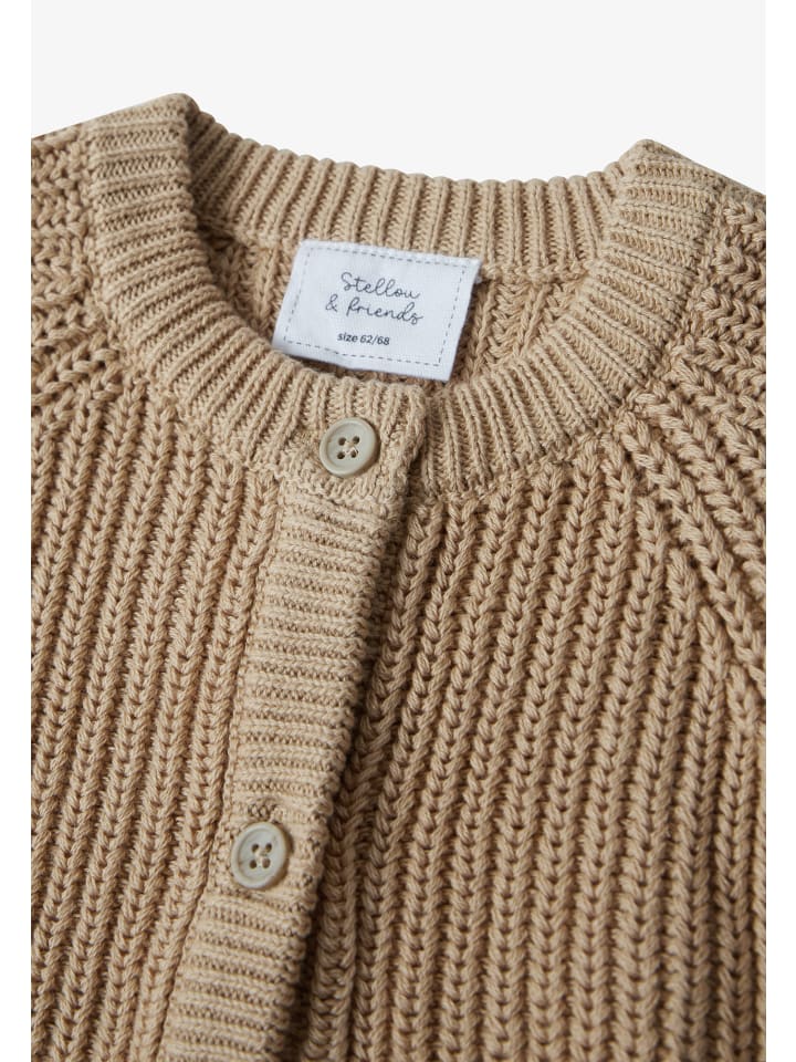 Stellou & Друзья - только лучшее для самых маленьких! Этот кардиган связан с декоративной фактурой, создающей естественный вид. Ткань из 100% хлопка мягкая на ощупь. Элегантный дизайн подчеркивают пуговицы под дерево и рукава реглан. Кардиган легко носить поверх спортивных брюк или милых платьев, он отлично подойдет как мальчикам, так и девочкам. Доступен в различных цветах.