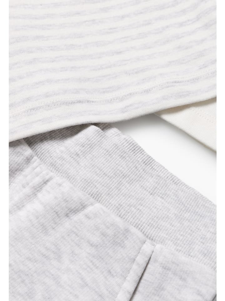 Этот комплект трикотажа, состоящий из двух рубашек с длинными рукавами и круглым вырезом, а также пары удобных спортивных штанов, несомненно, доставит вам удовольствие от ношения. Удобный базовый крой рубашек с длинными рукавами и спортивных штанов, а также приятная на ощупь мягкость органического хлопкового трикотажа, гарантирует комфорт. Штаны с мягким начесом на изнанке можно комбинировать как с полосатой, так и с однотонной рубашкой.