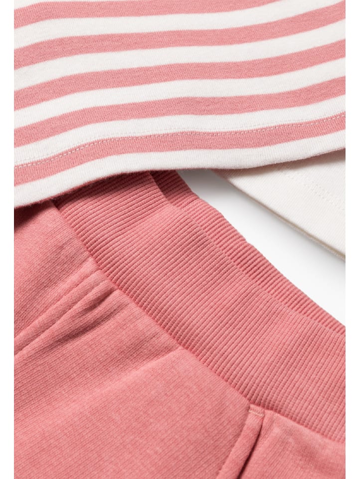 Этот комплект трикотажа, состоящий из двух рубашек с длинными рукавами и круглым вырезом, а также пары удобных спортивных штанов, несомненно, доставит вам удовольствие от ношения. Удобный базовый крой рубашек с длинными рукавами и спортивных штанов, а также приятная на ощупь мягкость органического хлопкового трикотажа, гарантирует комфорт. Штаны с мягким начесом на изнанке можно комбинировать как с полосатой, так и с однотонной рубашкой.