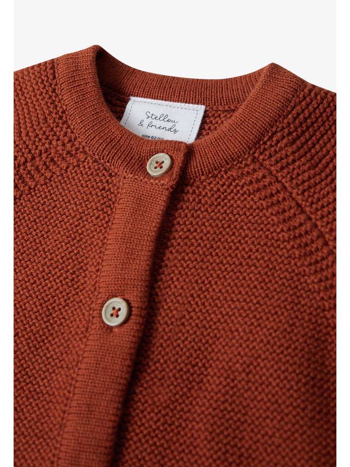 Кардиган Stellou &u0026 friends для младенцев и малышей - это высококачественная унисекс-куртка из 100% дышащего хлопка, идеально подходящего для чувствительной детской кожи. Куртка сертифицирована по стандарту OEKO-TEX 100 (класс продукции 1) и гарантированно не содержит вредных веществ. Благодаря классическому круглому вырезу, уютному капюшону и практичной планке с пуговицами под дерево, куртку легко надевать и снимать. Мягкая и прочная ткань сохраняет форму и цвет даже после частых стирок - идеально подходит для осени и зимы.
