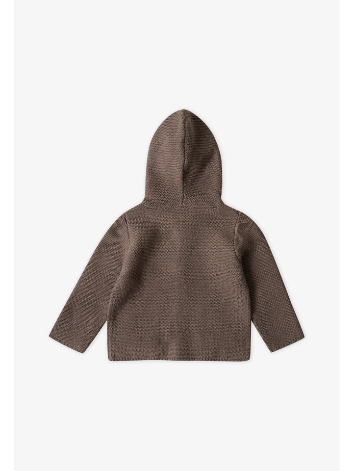 Благодаря практичной планке с пуговицами, имитирующей дерево, классическому круглому вырезу и идеально скроенным рукавам, его легко надевать и снимать. Прочный материал сохраняет форму и мягкость даже после частых стирок. Этот кардиган с капюшоном идеально подойдет как для девочек, так и для мальчиков в прохладные дни осени и зимы.