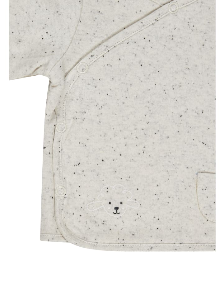 Детская куртка из меланжевого трикотажа с цветными крапинками, изготовленная из смеси хлопка и полиэстера /// с запахом и застежкой на пуговицы сбоку