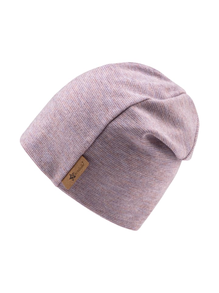 Шапка бини из смесовой ткани меланжевого цвета с тонкими полосками