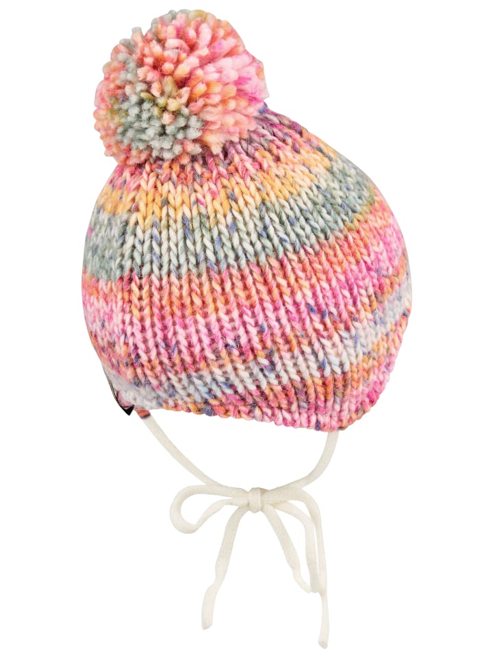Шапка-помпон с содержанием шерсти /// Цветовая гамма /// с пришитыми ушами /// с завязками /// на подкладке из хлопкового флиса