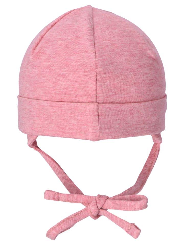 Шапка OCS с отворотом из меланжевого одинарного трикотажа (органического) /// Вышитый мотив /// Ушанки /// Тесьма для завязывания