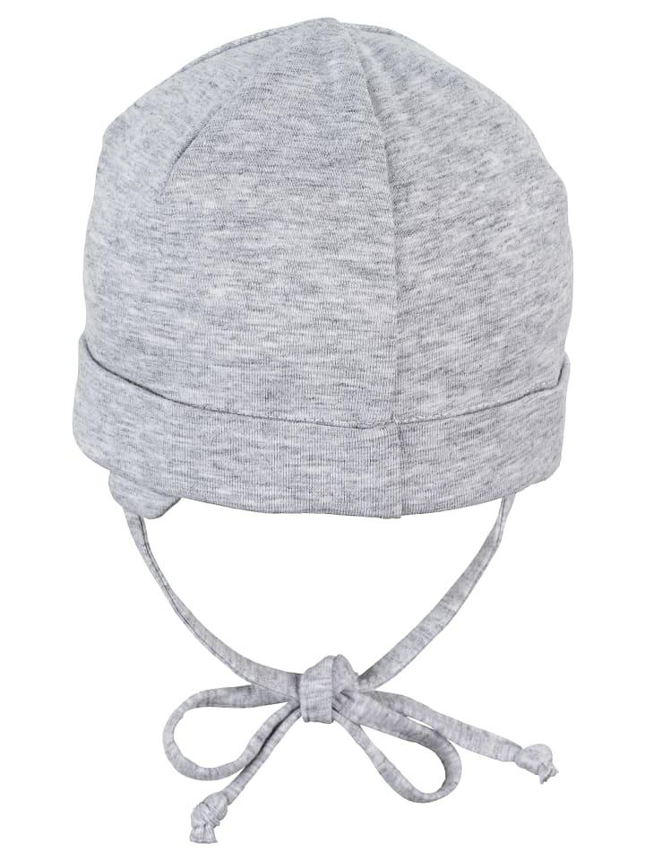 Шапка OCS с отворотом из меланжевого одинарного трикотажа (органического) /// Вышитый мотив /// Ушанки /// Тесьма для завязывания